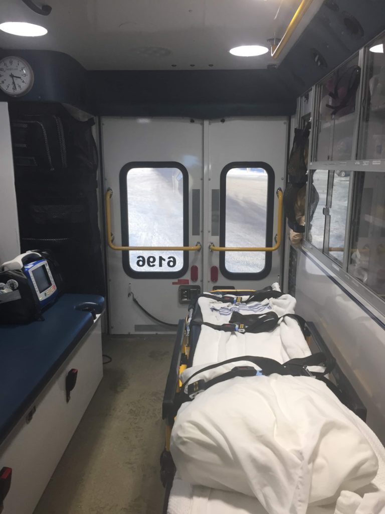 It was a wake-up, for sure. I suddenly became aware that I was looking out at the receding highway through the back windows of an ambulance. Somehow, I wasn’t surprised; but I didn’t know how I got there. So I asked. I got a short explanation.